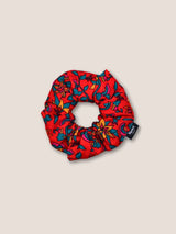 Our Kampot print hair scrunchie in is made from the offcuts of the fabric that goes into our shirts. We're aiming for a zero-waste fabric policy, using fabric off cuts to make our accessories, and recycling any scraps that are just too small to be used. Made from 100% recycled plastic bottles, this soft material will be gentle to your hair. We've used hues of vermillion red, fuschia pink and papaya orange for a truly stand-out hair accessory.